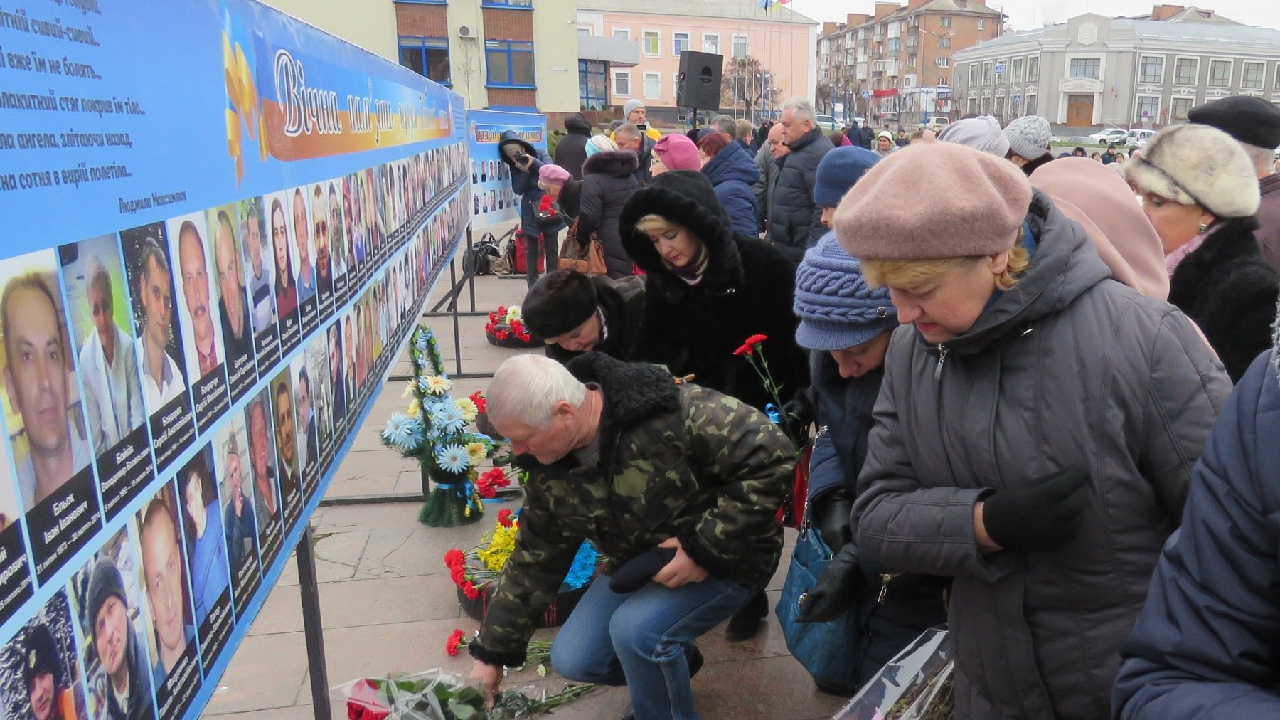 «Цього дня, у п’яту річницю початку масових акцій протесту під час Революції Гідності, ми схиляємо голови у хвилині скорботи в пам’ять про Небесну сотню Майдану і про Небесний легіон героїв російсько української війни. Вони загинули за нашу з вами гідність і свободу. Жодна революція не обходилася без наших земляків-білоцерківців. Будьмо достойними їхнього подвигу», – промовив голова міського партійного осередку «Батьківщина» Сергій Беркут.